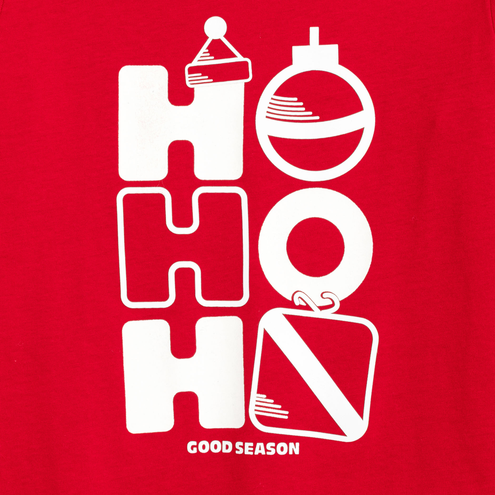 Червена тениска с дълъг ръкав и надпис "HO HO HO