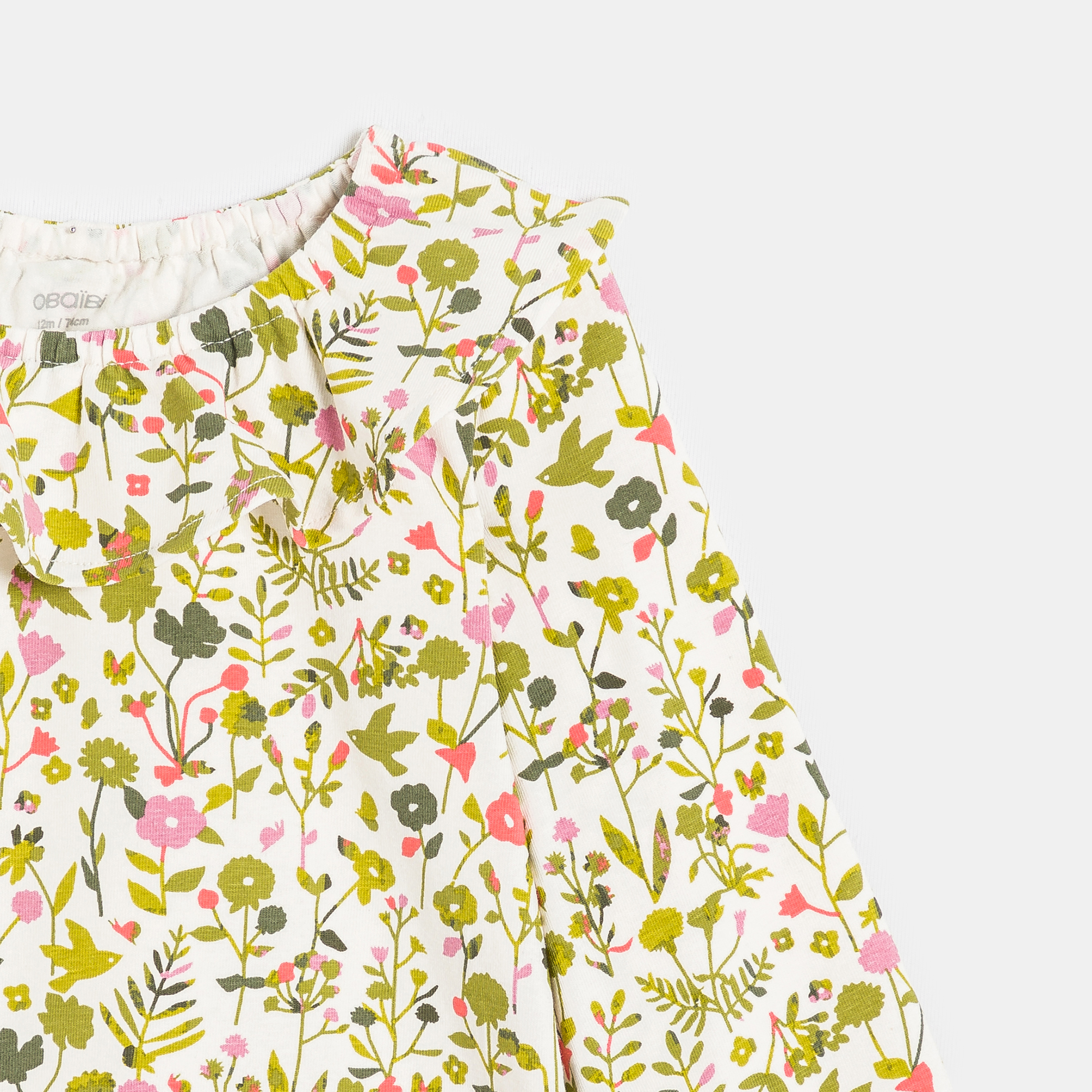 Блуза с флорален принт. Свободна, непринудена кройка, идеална за ежедневно носене. Изработена от мек памук, тя е приятна на допир. Набраното деколте добавя изискан щрих. Практична и удобна, лесна за обличане, със свободно падащи дълги ръкави.Състав