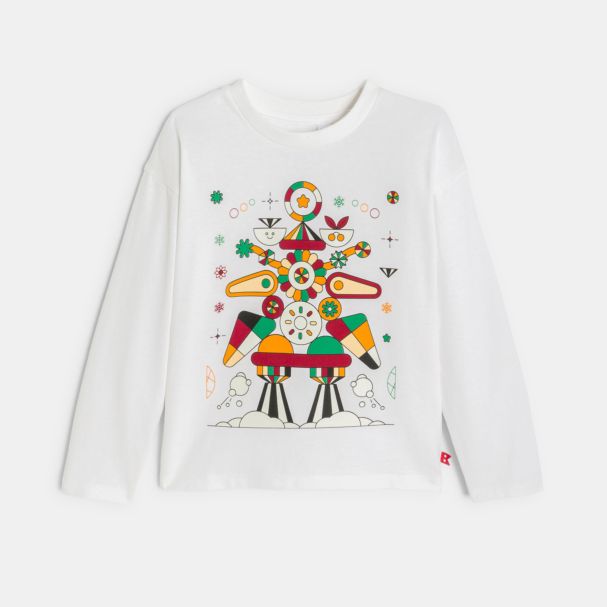Бяла тениска с дълъг ръкав Okaïdi X Maison Tangible