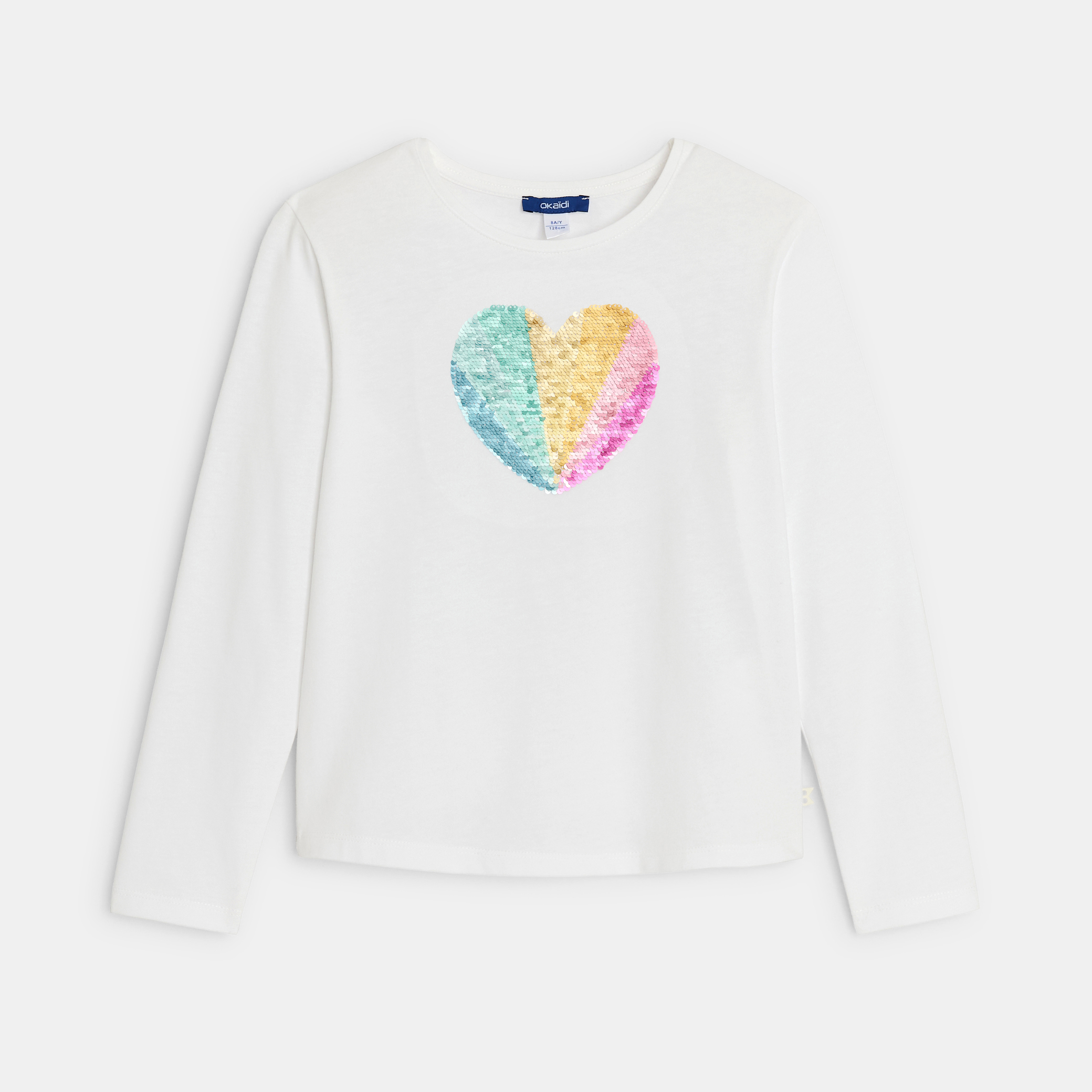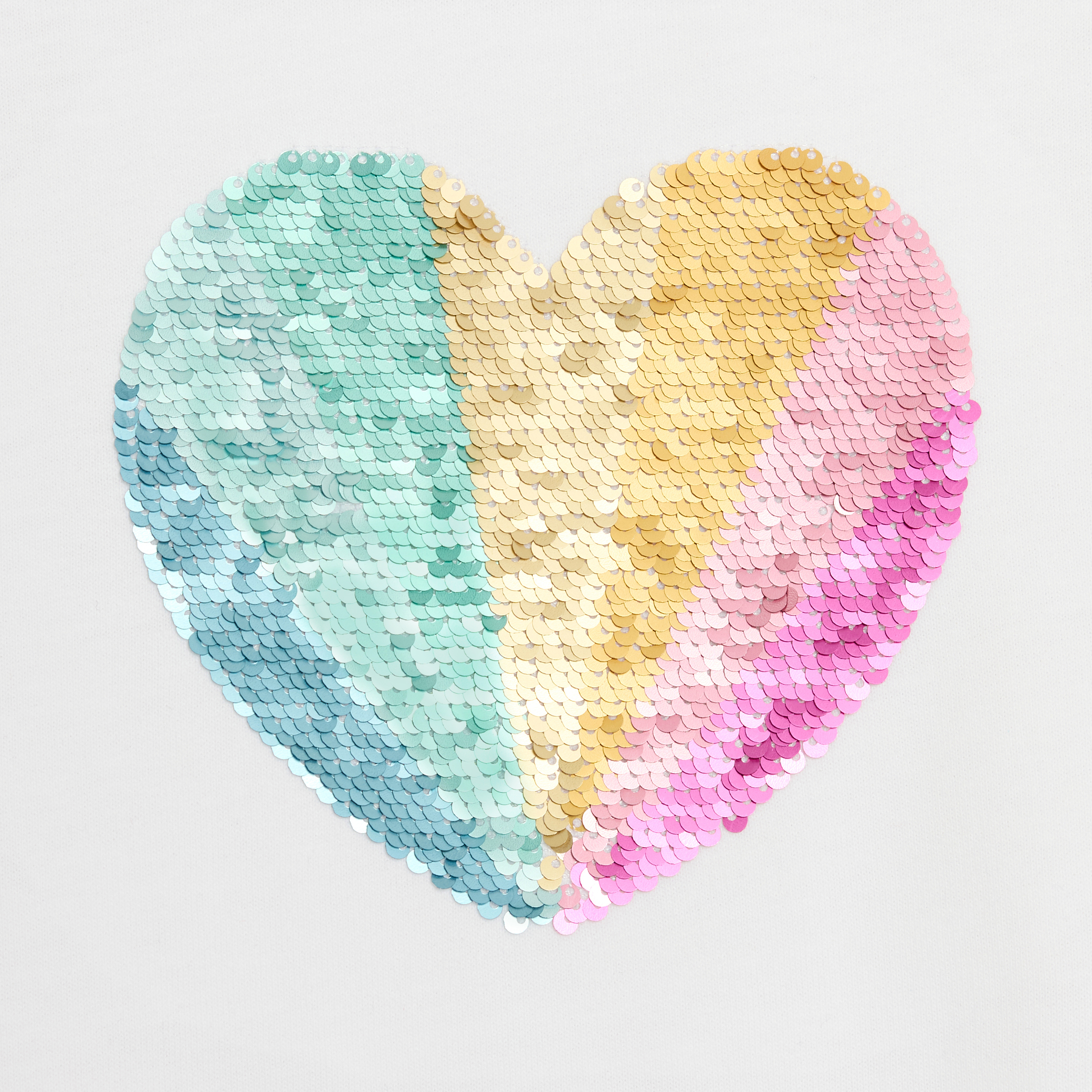 Добавете нотка магия към гардероба си с тази мека бяла тениска от трико. Тя е с блестящо сърце, изработено от многоцветни пайети отпред. С кръгло деколте и дълги ръкави за максимален комфорт, тя е идеална за ежедневно носене, съчетавайки елегантност и практичност. Лесна за обличане и лесна за поддръжка. Закачлива и цветна задължителна дреха!