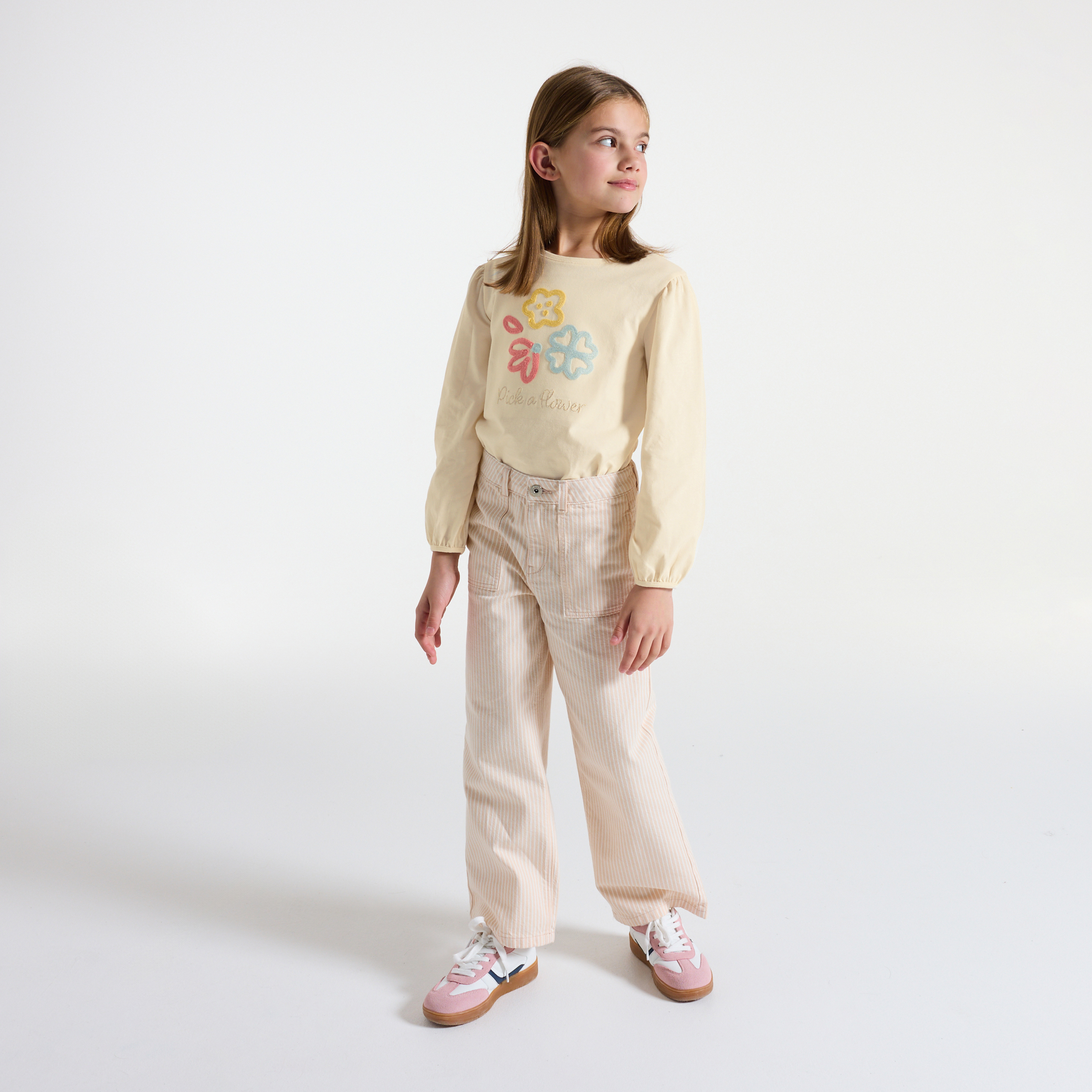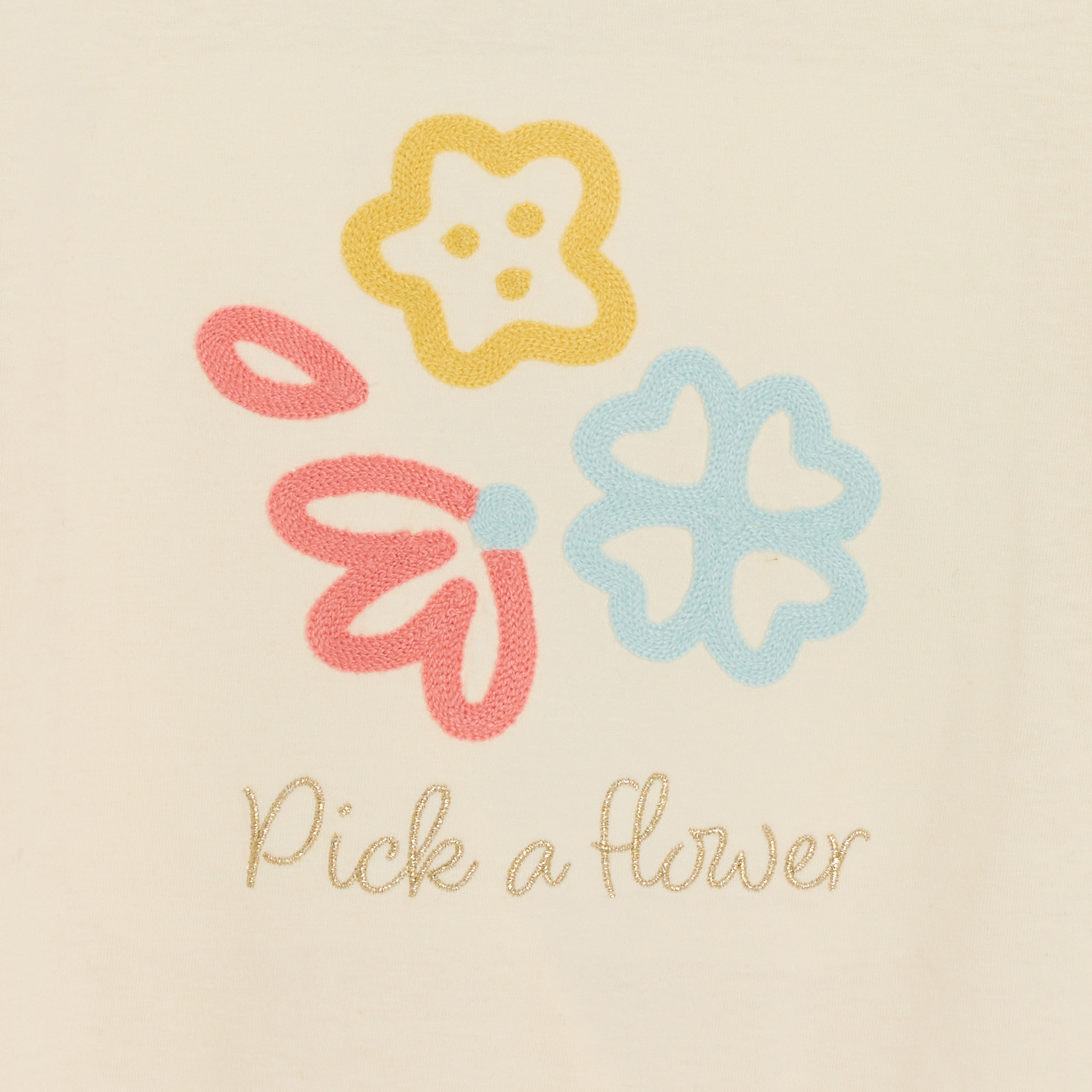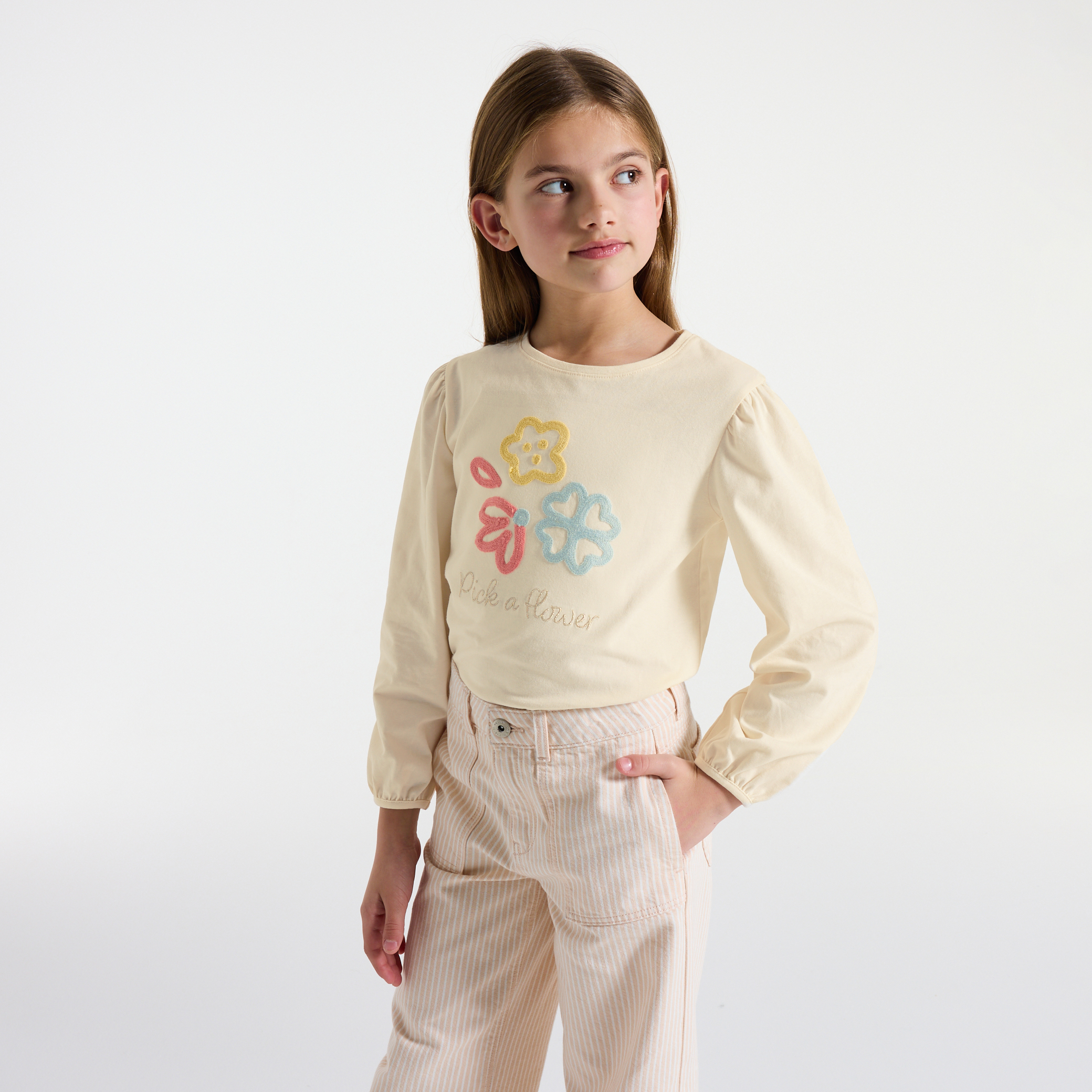 Стилизирани цветя за модните последователи! В тази тениска с флорален принт, детайлите са от значение: дълги ръкави, леко плисирани на раменете и събрани на китките, кръгло деколте и бродирани цветя в плетен стил с преливащи се нотки. Задължителна дреха в гардероба на всяко момиче!