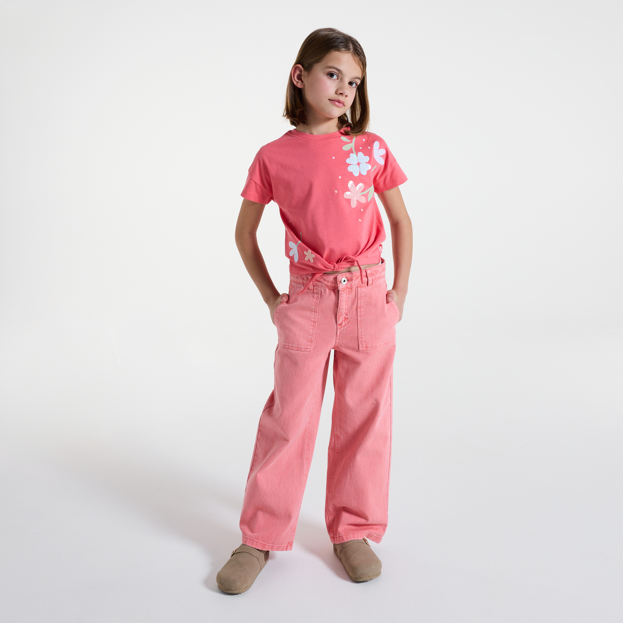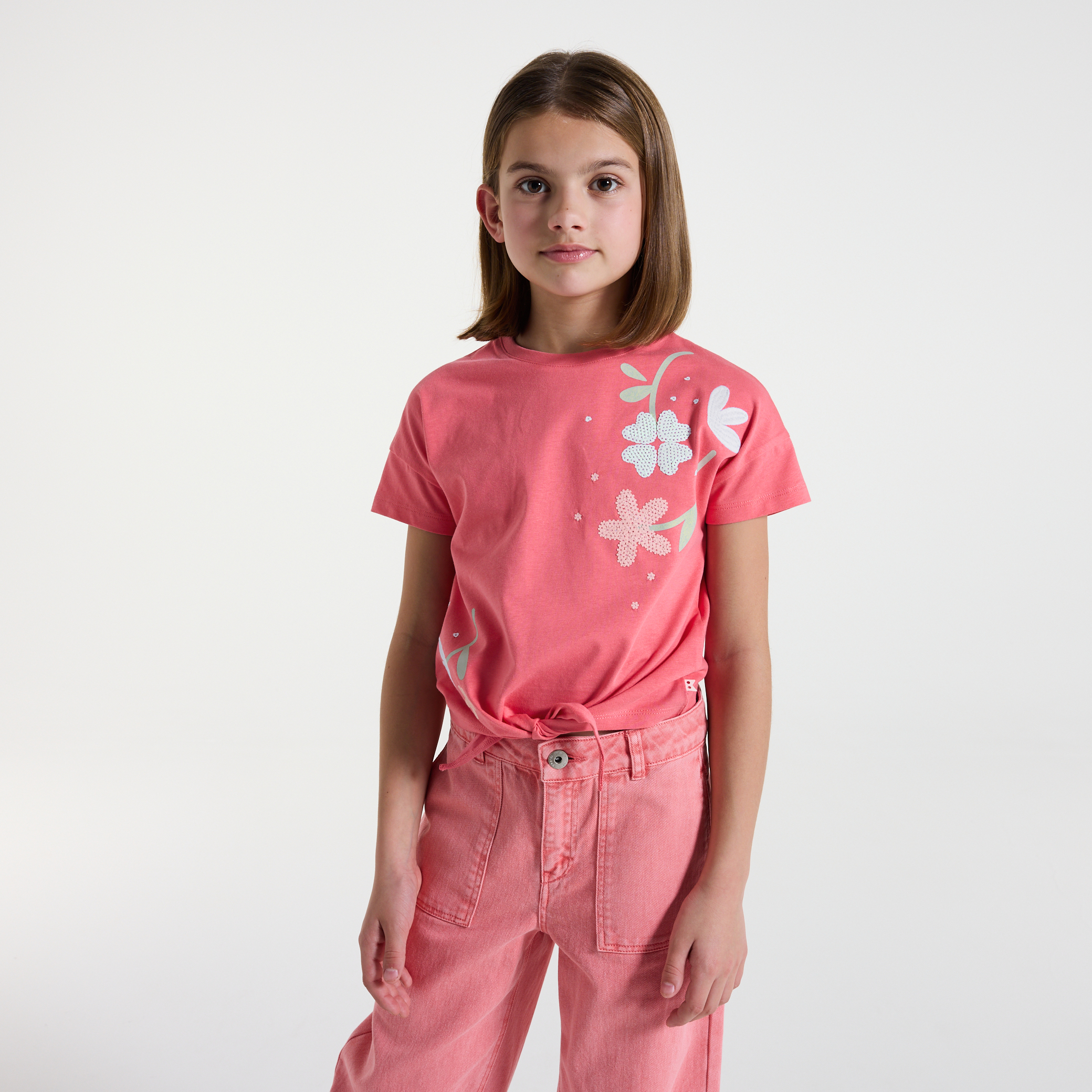 Розова тениска с мотиви на цветя