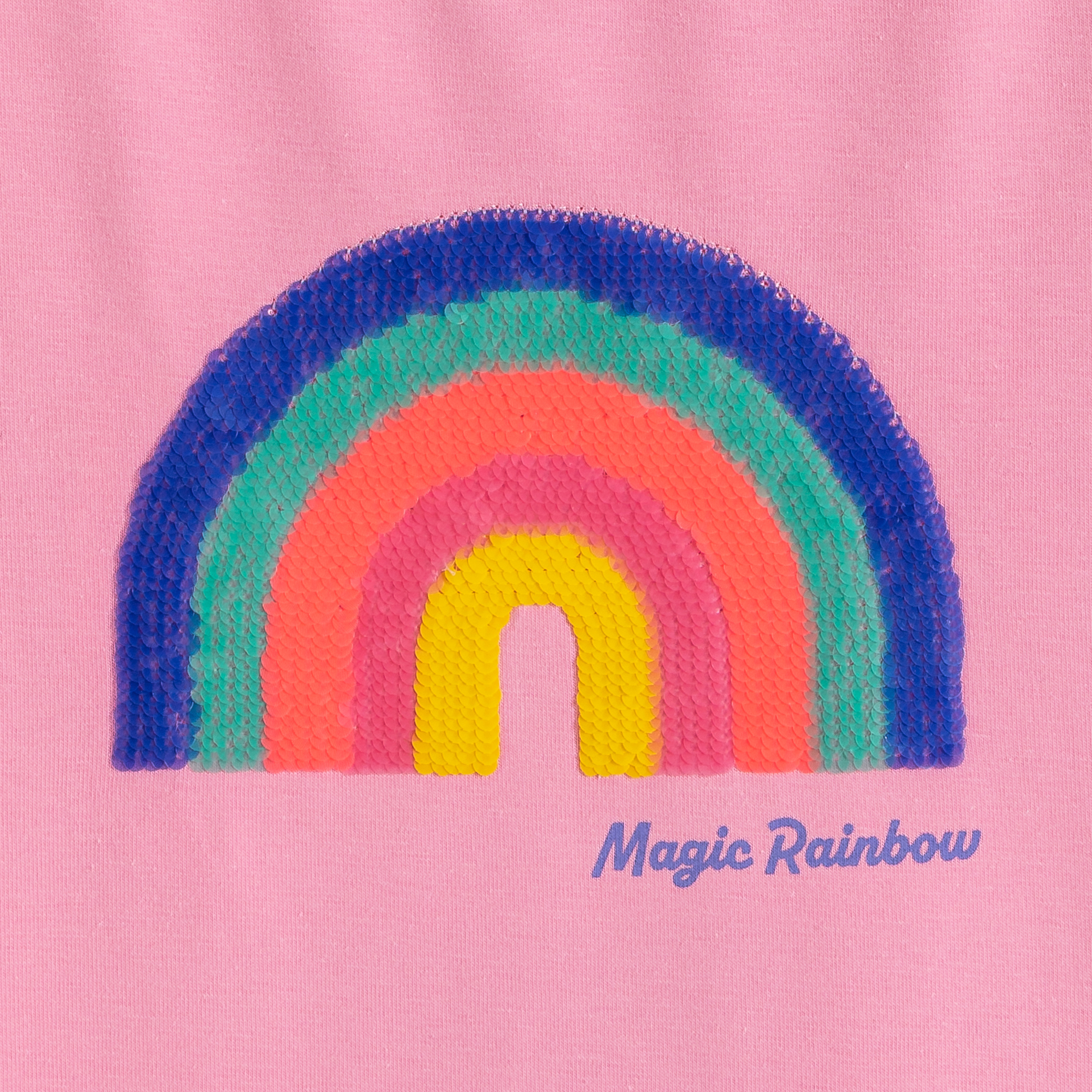 Розова тениска с магически пайети и дъга