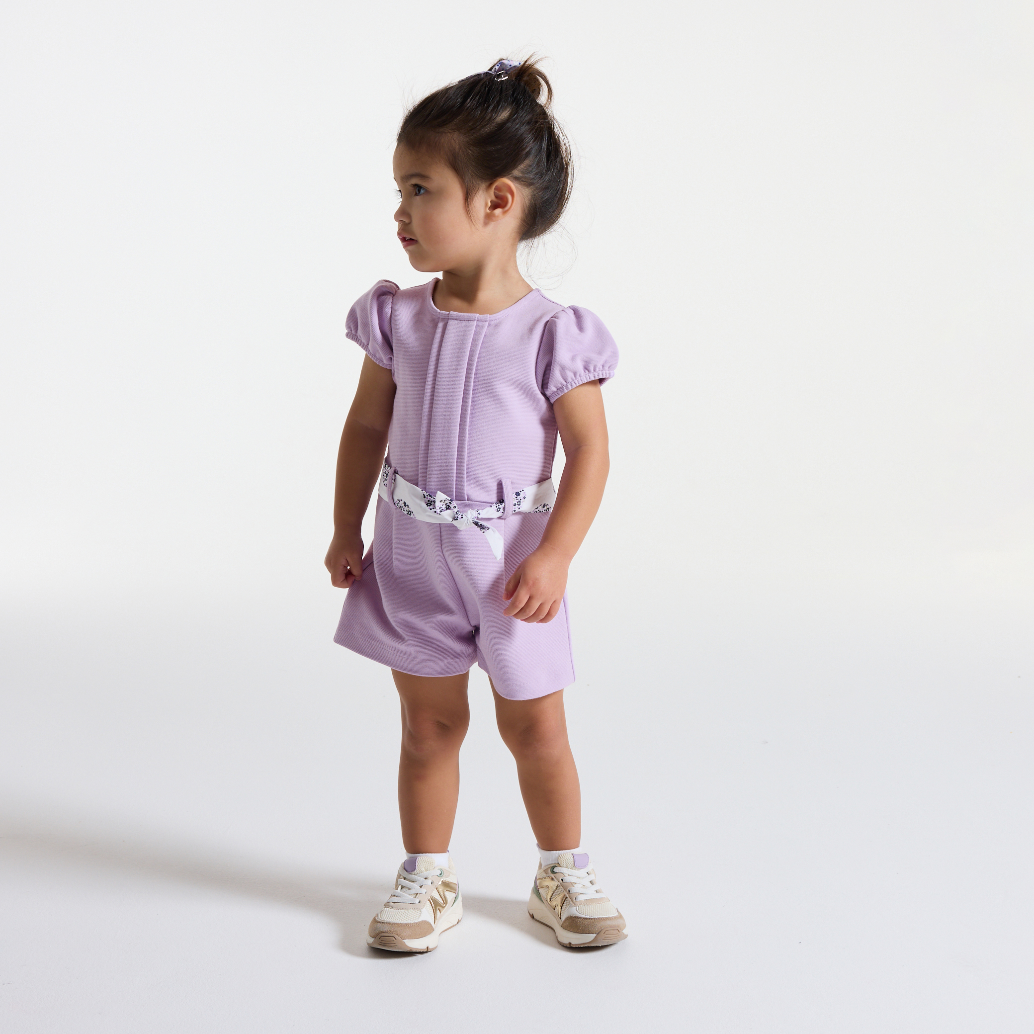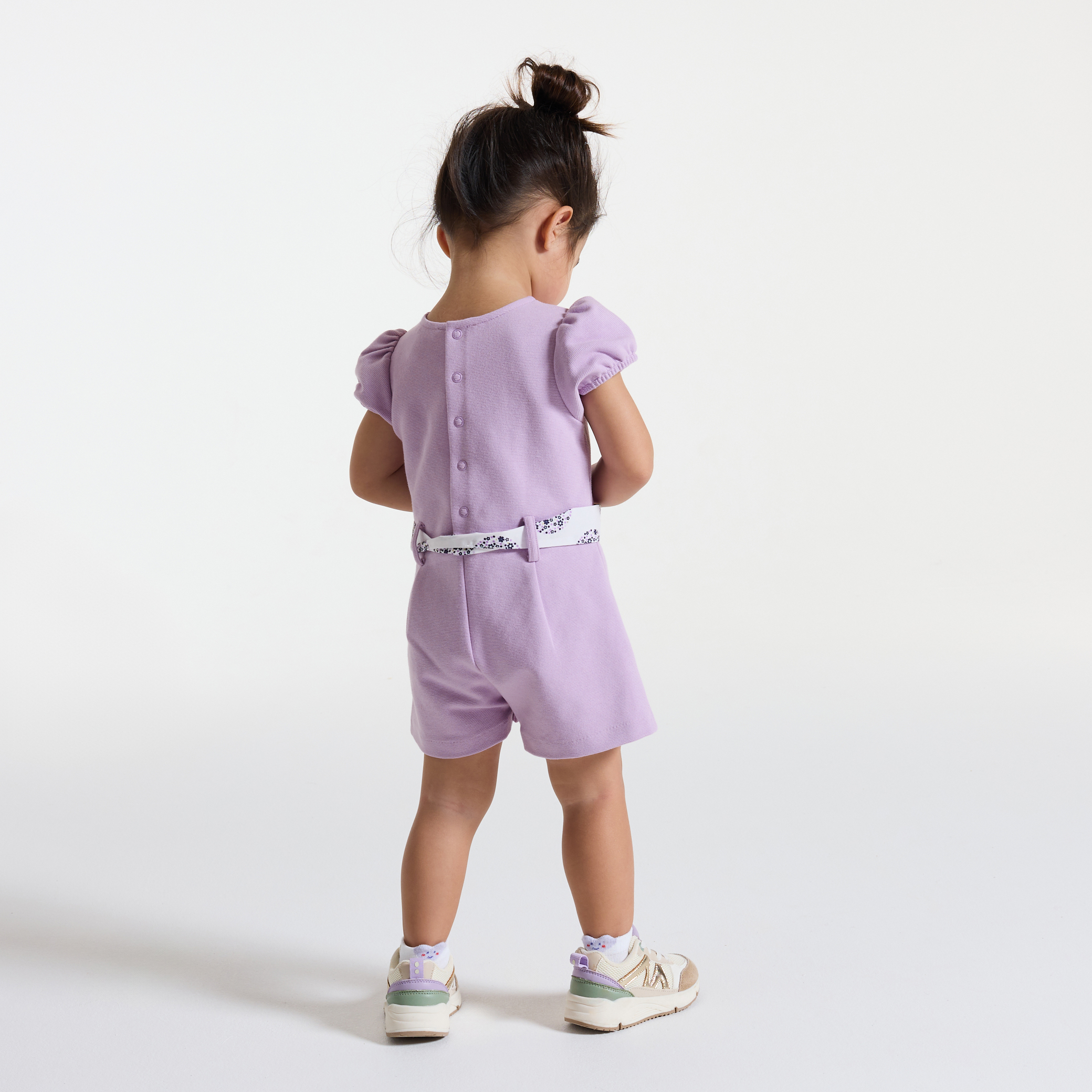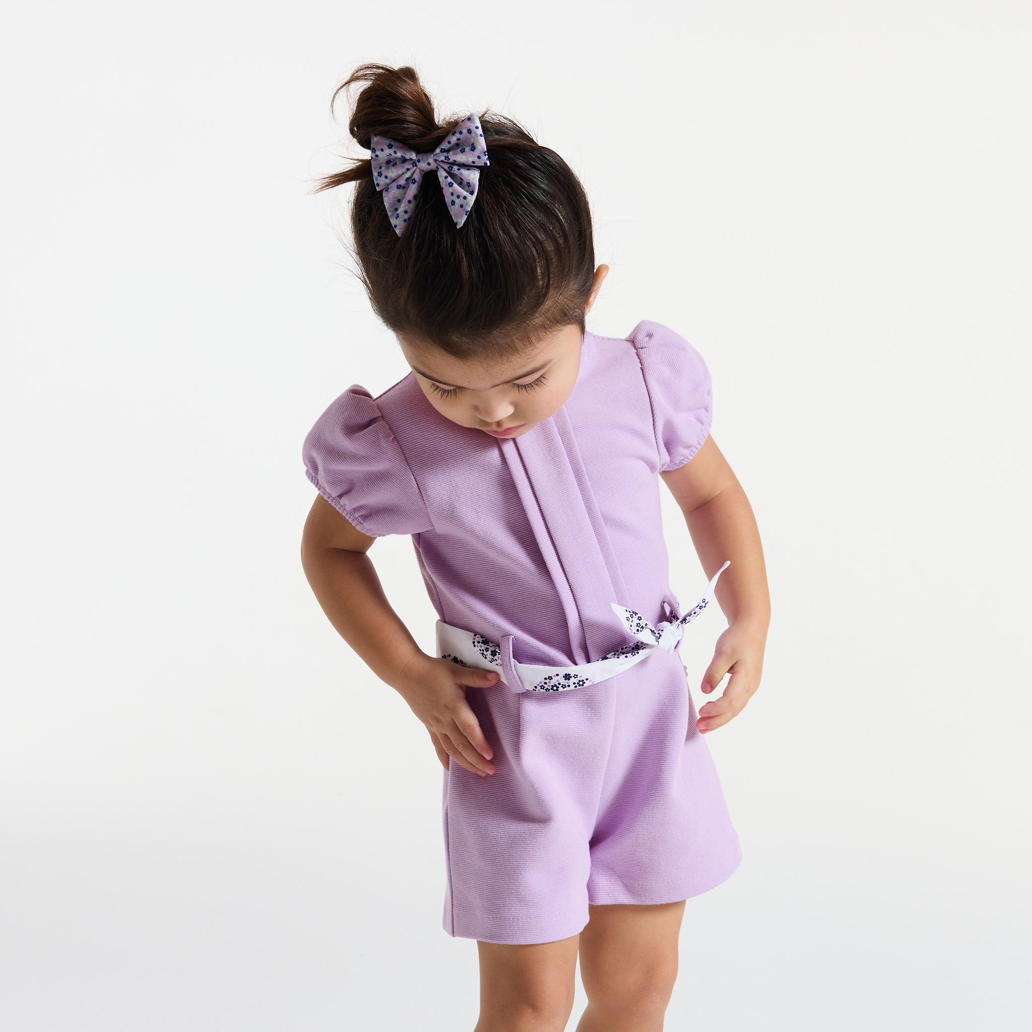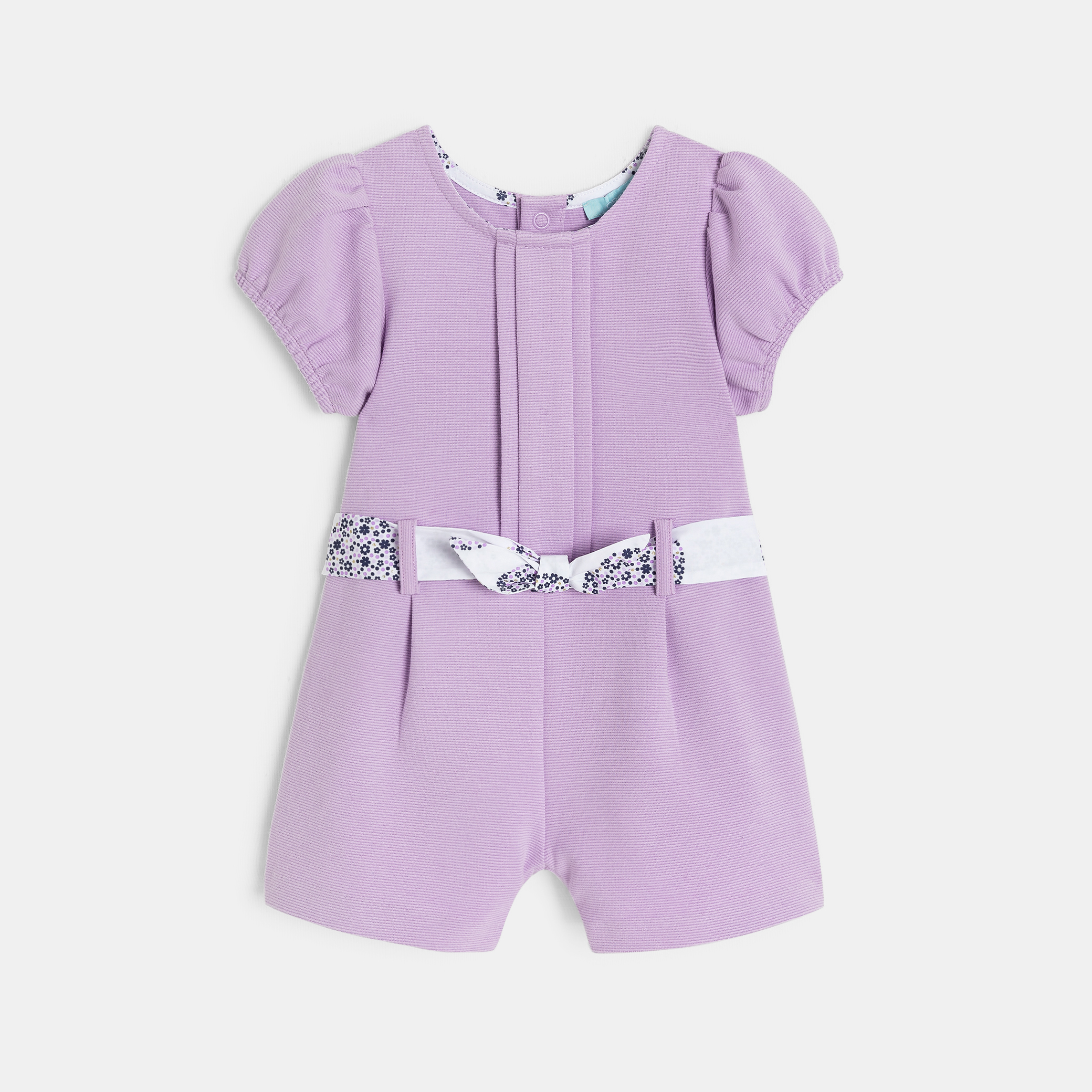Този гащеризон е идеален за слънчевите дни. Къс стил с къси балонени ръкави и колан с флорална панделка. Трикотажна материя. Идеален за дни в града или за специални поводи. Практично закопчаване на гърба. Гарантирано удобство.Състав