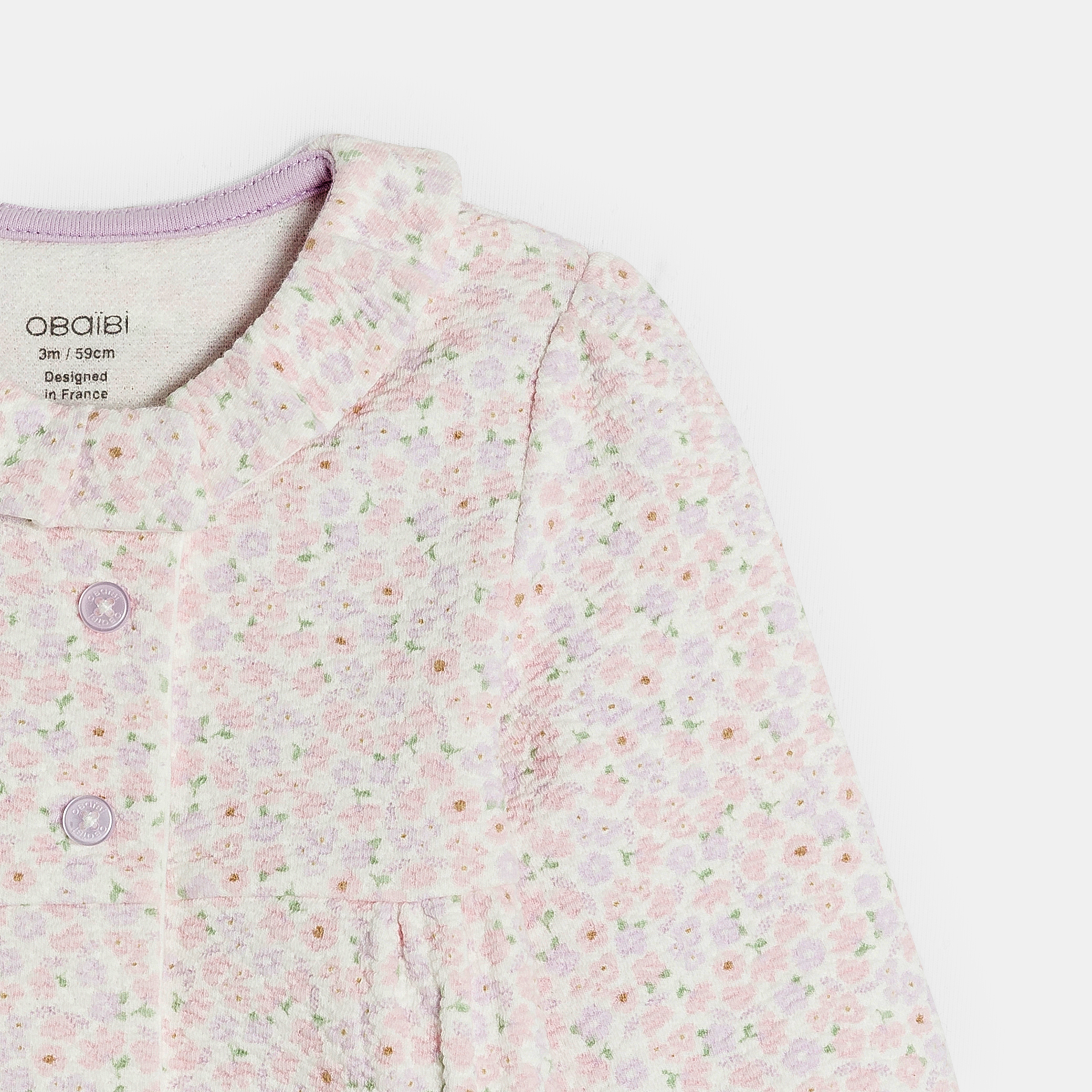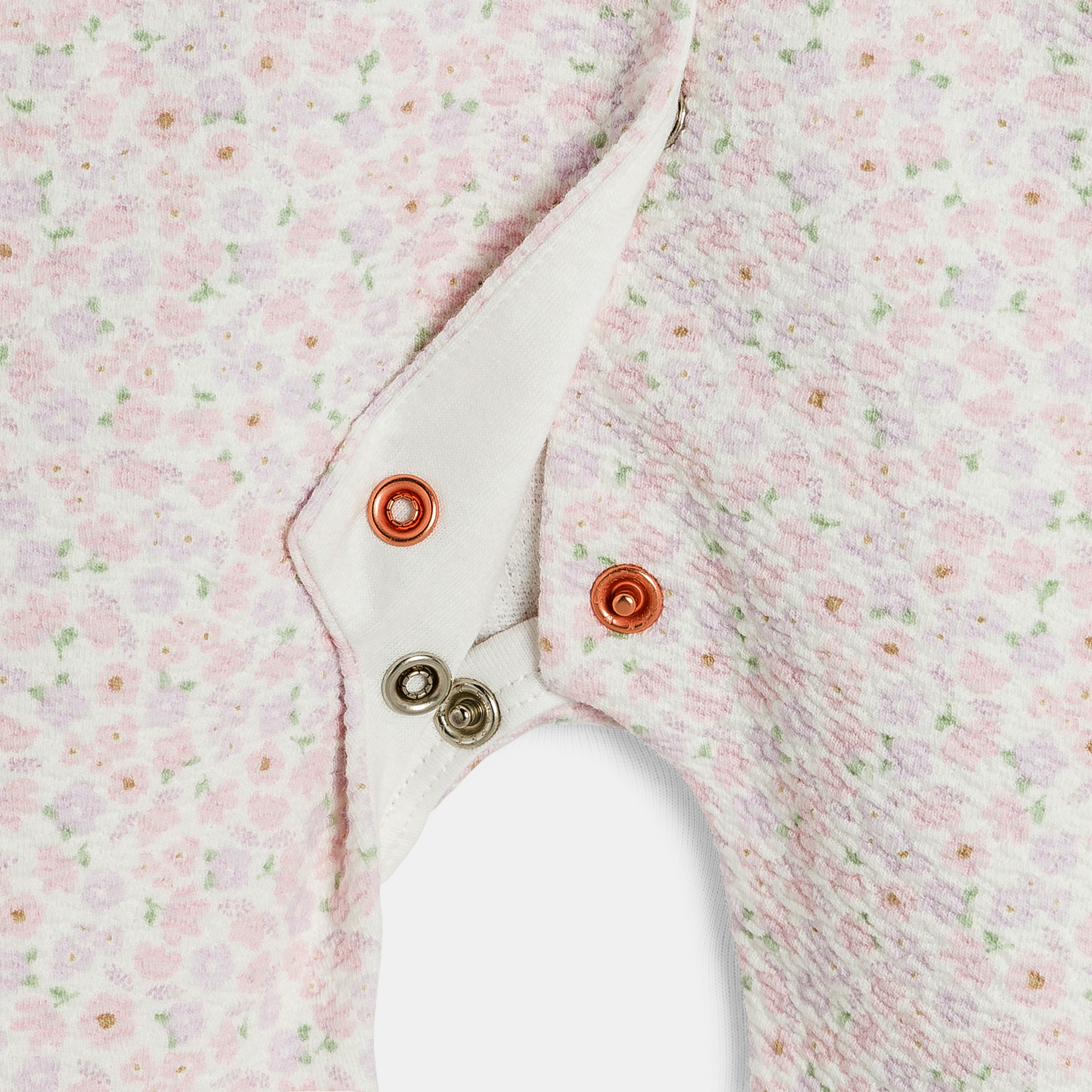 Цветя за малките романтици! С това спално костюмче от декоративна мека плетка момичетата могат да се движат свободно в пълен комфорт. Предно закопчаване за лесно обличане с бебето по гръб.Състав